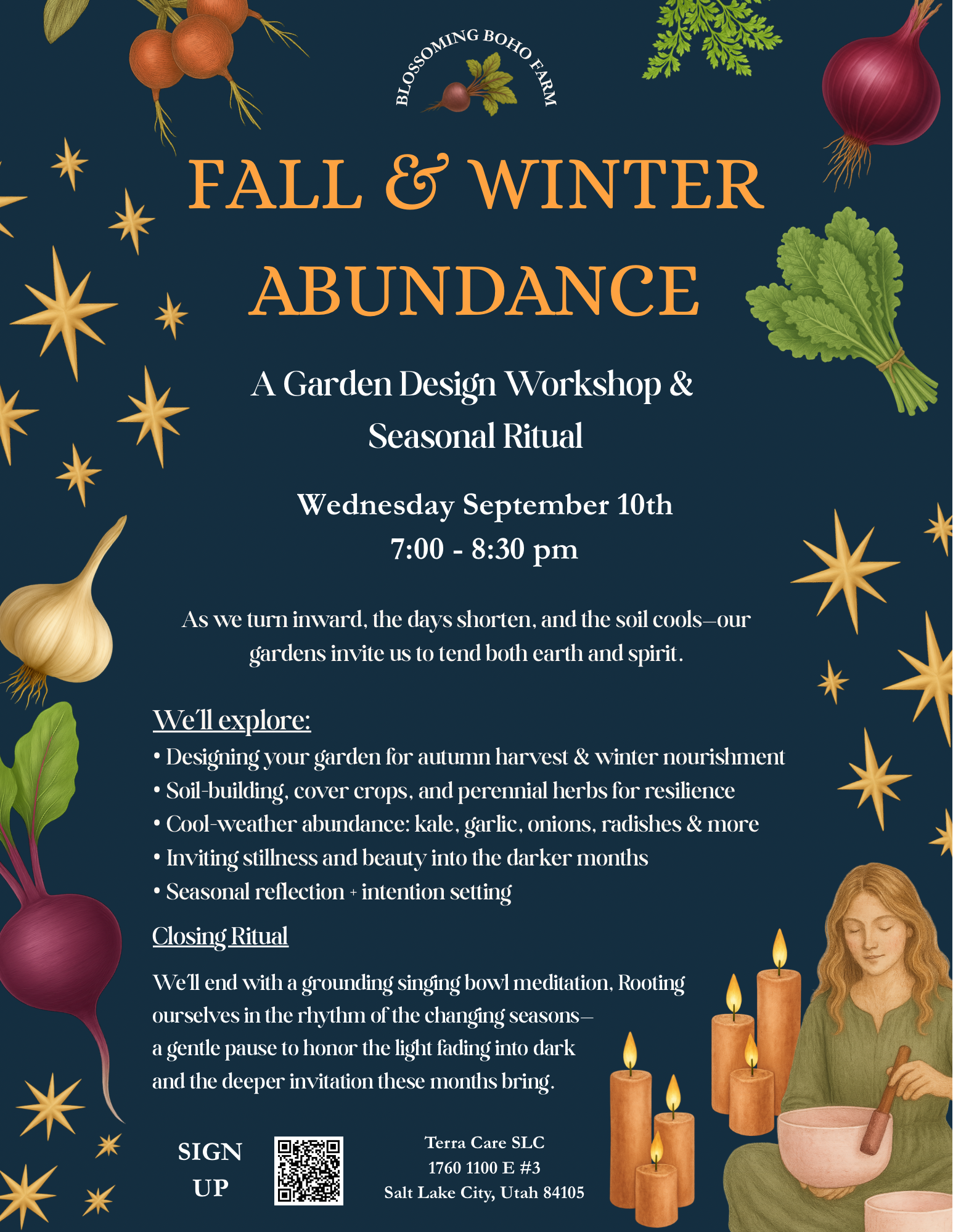 A seasonal workshop weaving practical seasonal garden design with earth-honoring ritual, inviting you to tend both your garden and your inner landscape.
